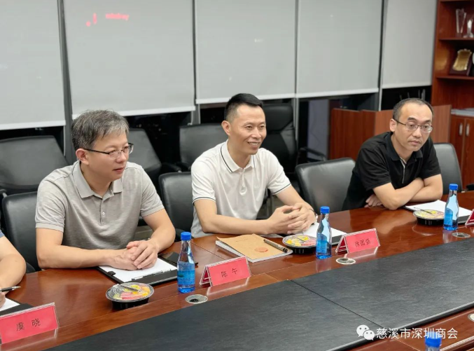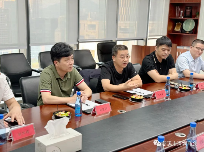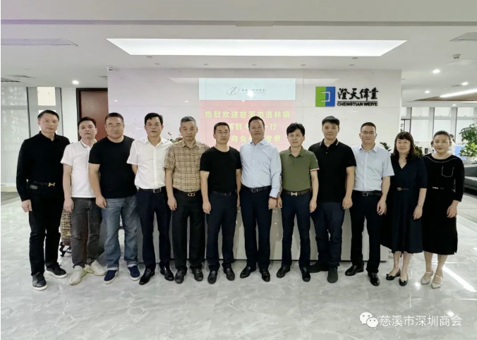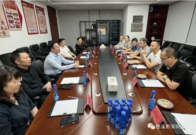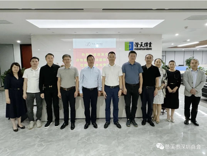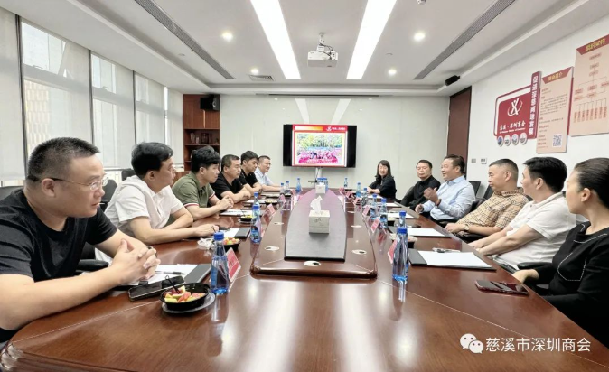 2023年11月1日,慈溪市政协副主席徐国强一行、慈溪市逍林镇书记沈科群一行莅临商会参观指导并座谈。商会会长岑冲平,常务副会长岑夏芬、副会长岑新法、陈利锋、杨沛其、胡利杰等商会成员出席了座谈会并热情接待了家乡领导。