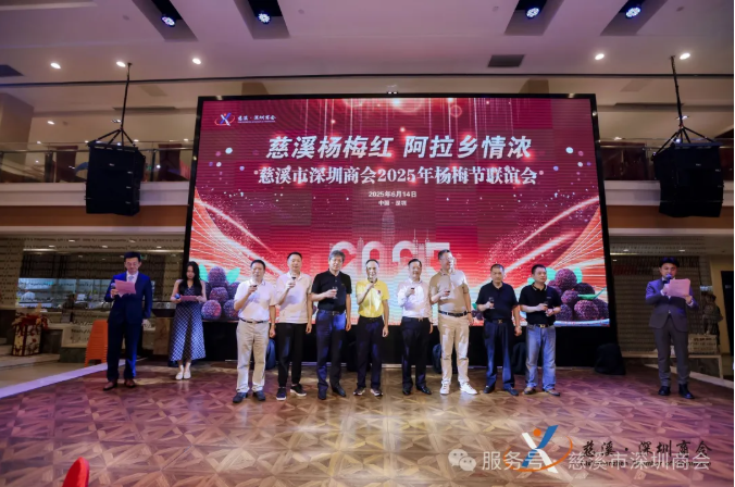 "南国热土书华章,慈商乡情动鹏城"。2025年6月14日,以“慈溪杨梅红,阿拉乡情浓”为主题的慈溪市深圳商会2025年杨梅节联谊会在华强北喜荟宴会厅隆重举行。260位在深慈溪籍会员及家属朋友欢聚一堂,共叙乡情、共品杨梅,活动现场温情洋溢,展现了慈商团结奋进、乡谊绵长的精神风貌。